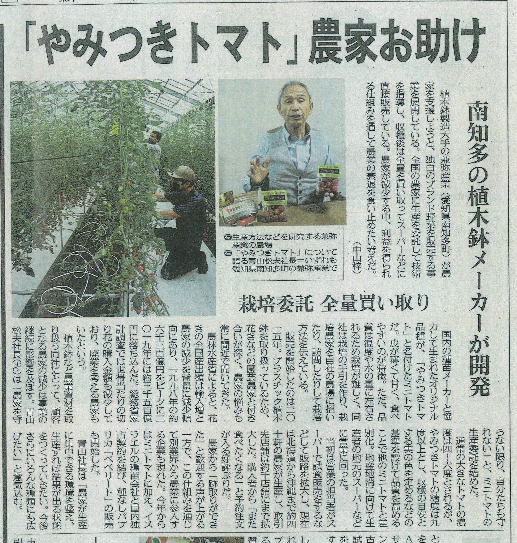 YAMITSUKIトマトの取組が中日新聞で取り上げられました!